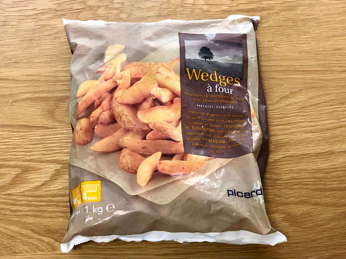 ピカールは、フレンチフライが数種類販売されていますが、今回ご紹介する「皮付フレンチフライ(ウェッジカット)」は、1つ1つの大きさが順不同でコロコロしていました。