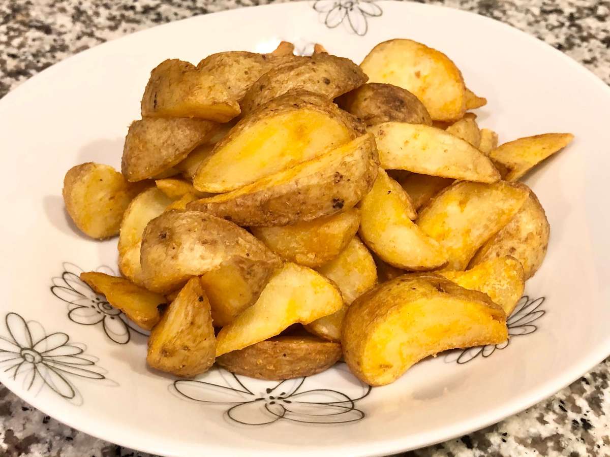 皮つきポテトなので、外が少し硬めで中はしっかりじゃがいも、といった味です。ガーリックパウダーとオニオンパウダーがまぶしてありますが、薄めなのでじゃがいもの味を基本的には楽しめます。
