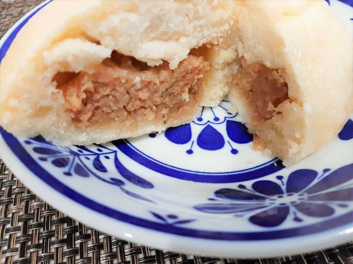 お肉の旨味と中華風の味付けがマッチ。生地に油が染み出すほどジューシーな肉まんです。