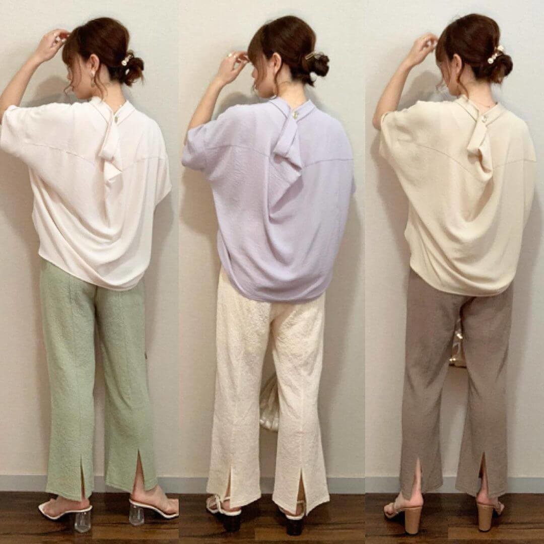 バックシャンブラウス×カットパンツの着回しコーデ②