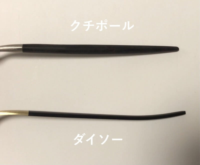 クチポールは人間工学に基づいてひとつずつ作られているので手にしっくりなじみ使いやすいですが、ダイソーのはそういった面では期待しない方がいいでしょう。