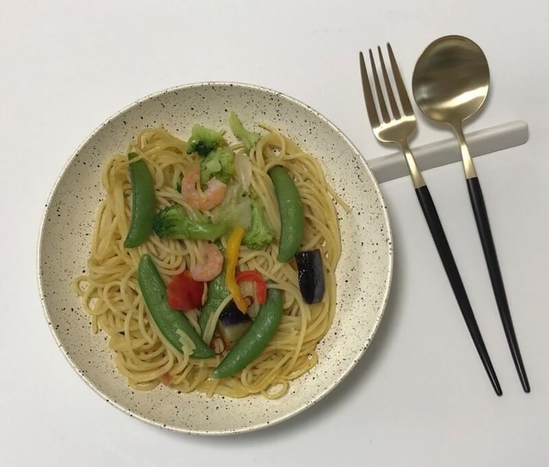 スイーツは100円くらい、パスタ(冷凍食品)も200円くらいのスーパーで購入したものですが、カトラリーがおしゃれだとお店で食べてる気分を味わって頂けました。