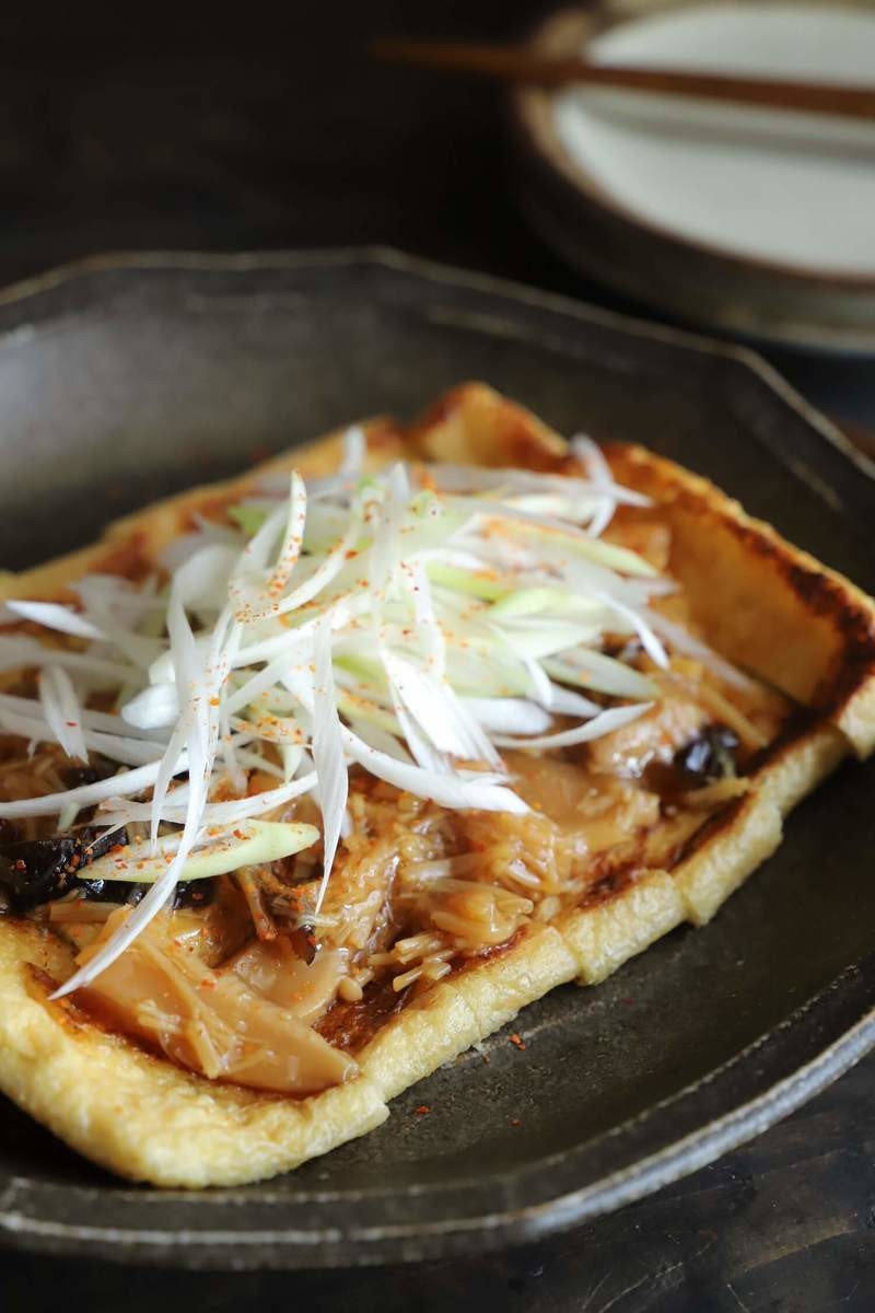 - カリカリ油揚げの4種キノコのせ