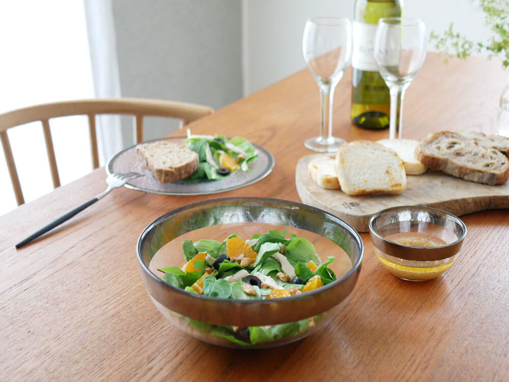 ガラスボウルは、冷たいお料理を盛り付けるだけでお料理がクラスアップされますね。陶器やプラスチックなどでは見えないサイドからも眺められるので、レイヤー状に重ねたりと盛り付けにも奥行きがでます。