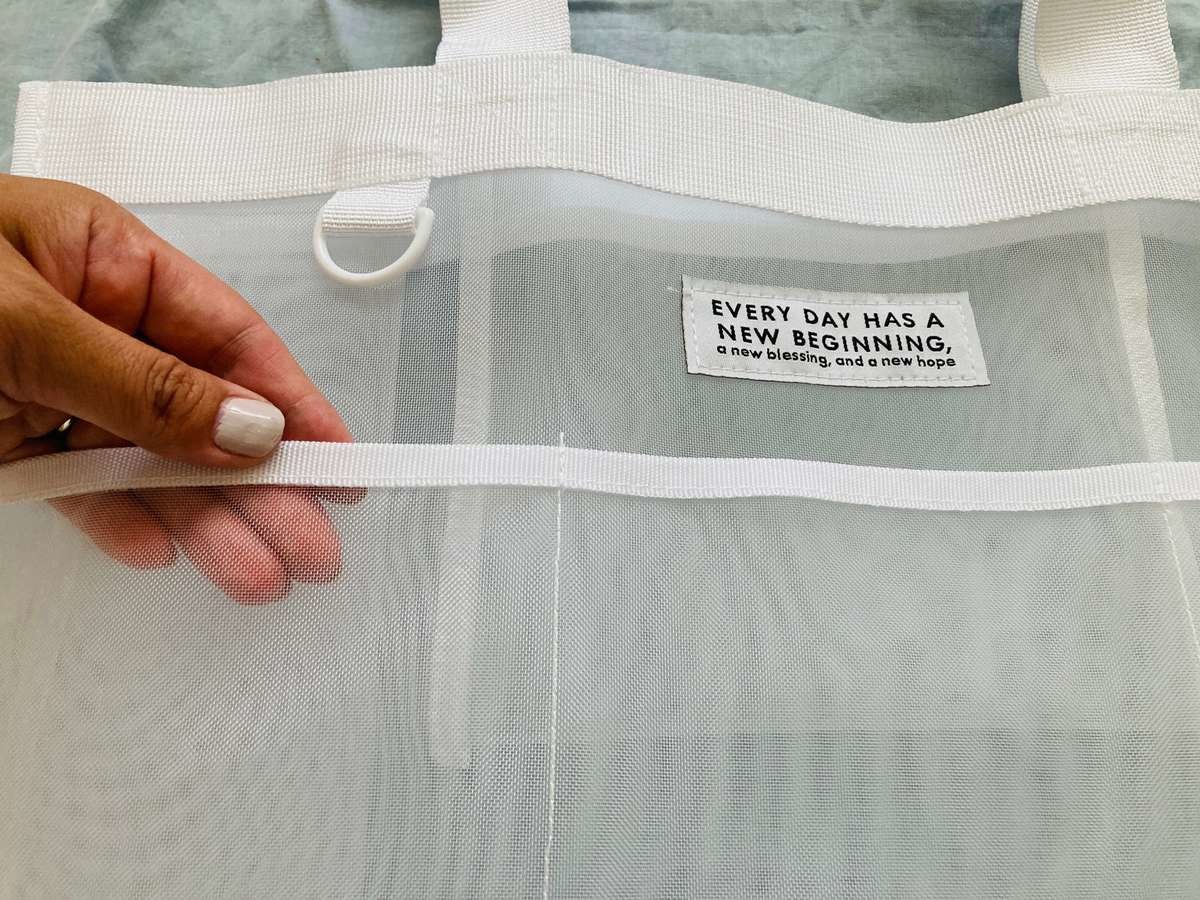 3つめは持ち手です。先が半分に折られているので、指に食い込みにくい!耐荷重が8kgと力持ちなバッグなので、重くなっても持ちやすいのはうれしいですね♪
