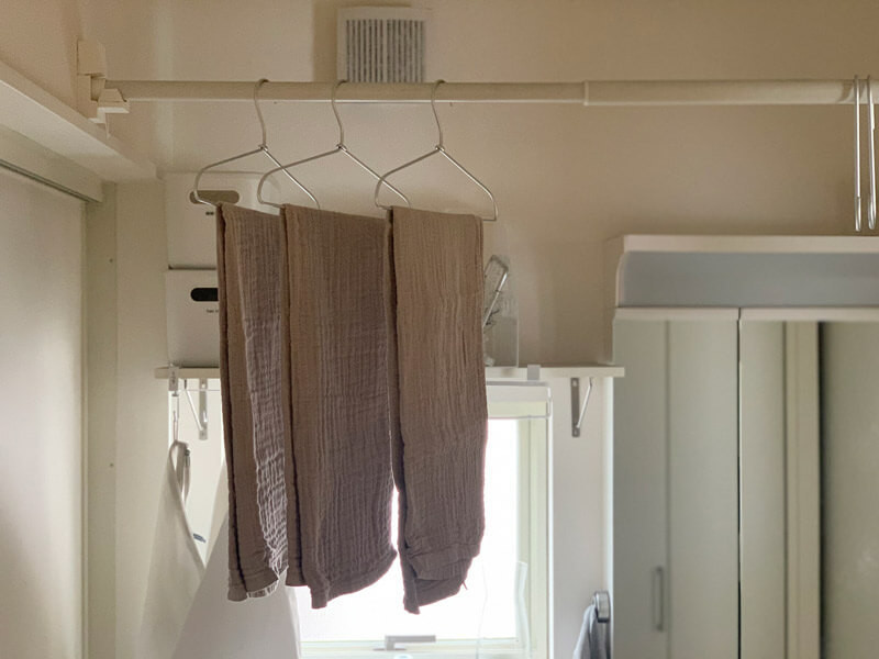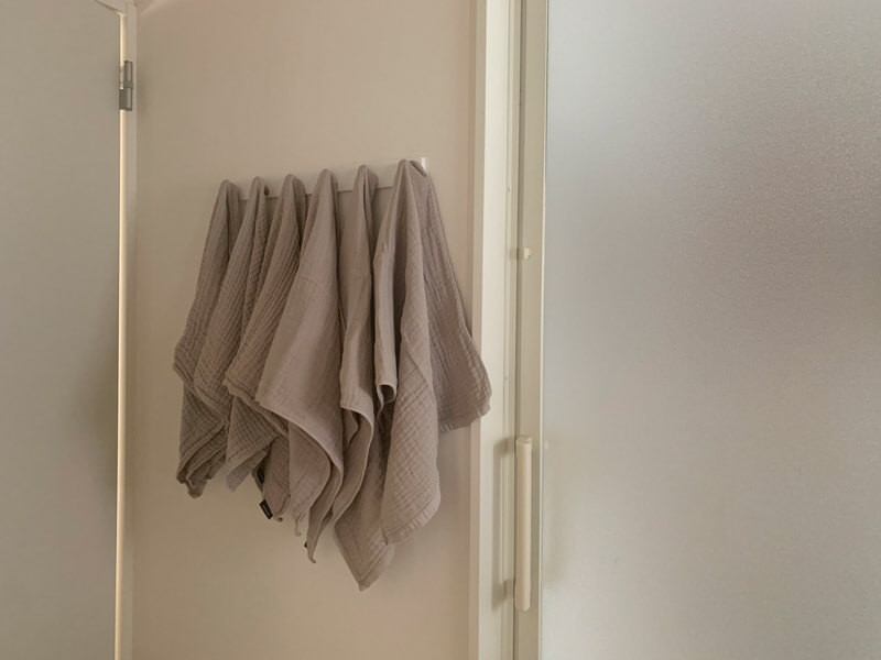 タオルハンガーに干した時に収まるサイズ感なのも、私がミニバスタオルを選んだポイント。
