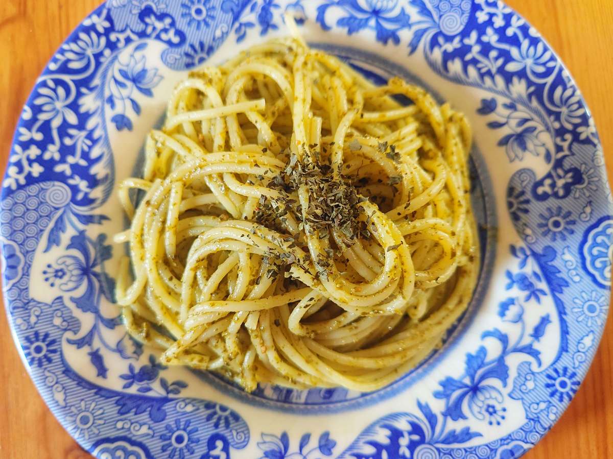 パスタに混ぜるだけで、簡単バジルパスタができます。