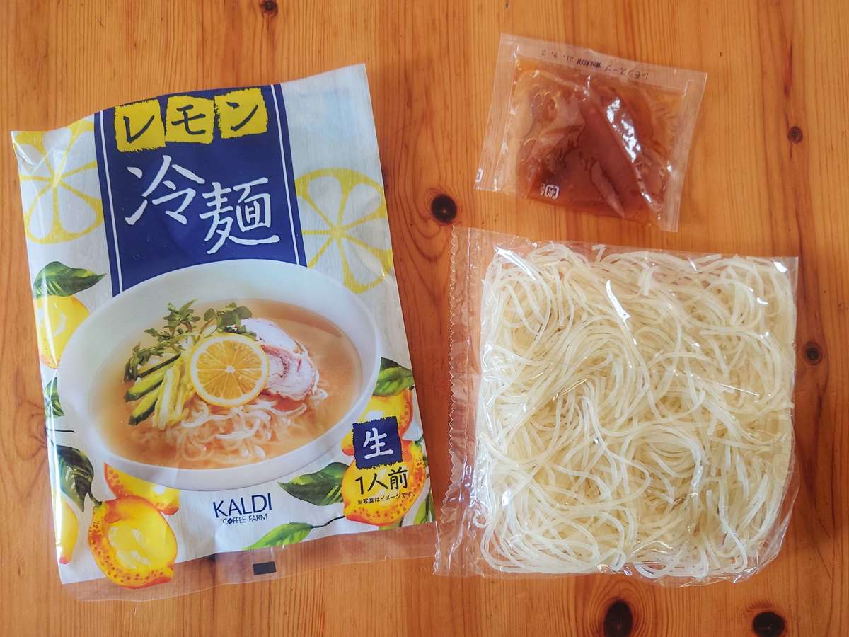 国産レモンを使ったスープ付きのカルディオリジナル冷麺です。