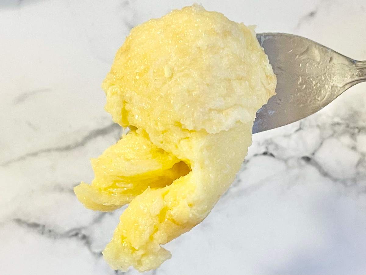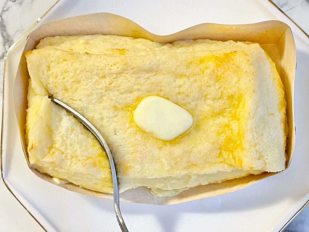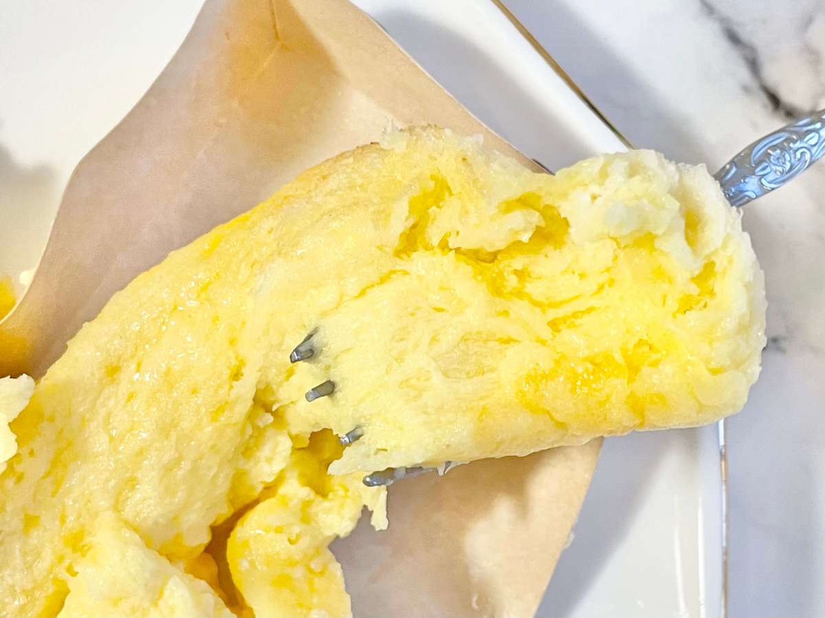 溶けたバターがじゅわ~と広がり、卵の風味と合わさって幸せな気持ちに。