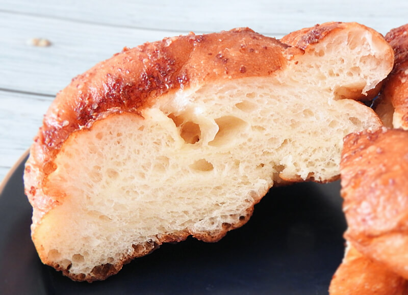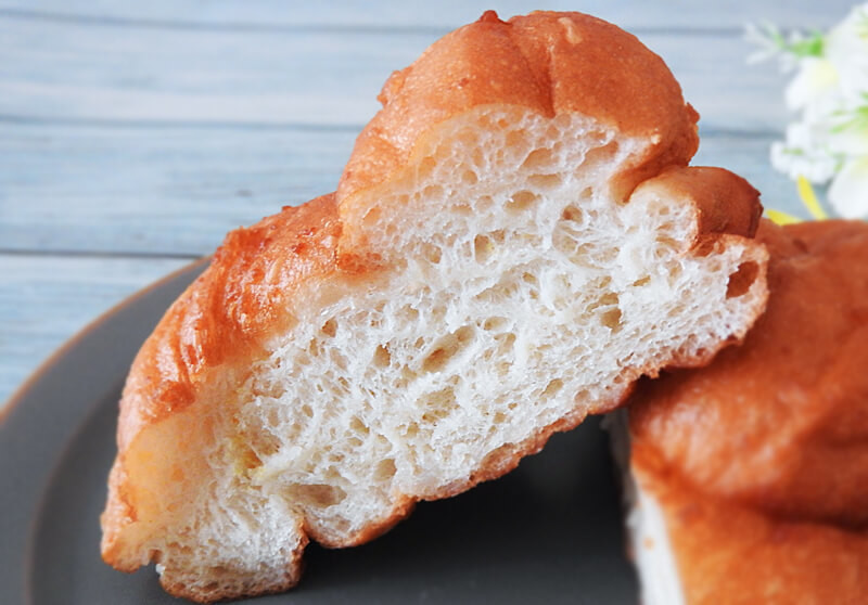 むぎゅっとドーナツは、水分を多く含んだ湯種生地が生み出した、噛みごたえある「むぎゅっ」とした食感が大きな特徴。ドーナツなのに穴が開いておらず、ユニークな形をしています。
