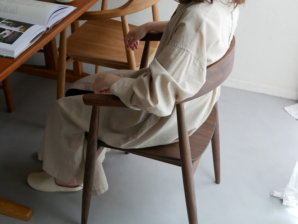 柔らかく細いフォルムの椅子は、どんなテイストのダイニングにもマッチし、静かな存在感を放ってくれます。