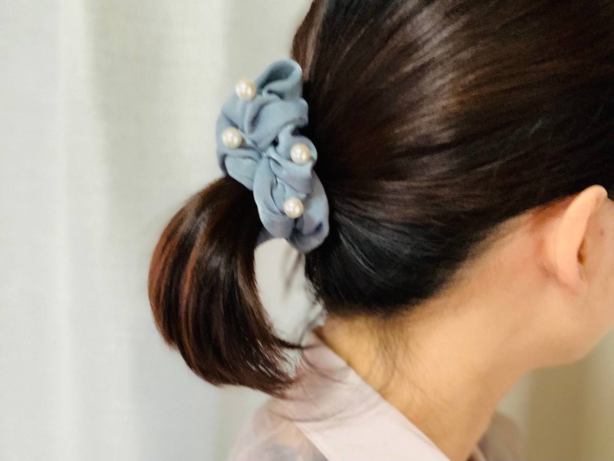 上品で完璧高見え“パール調シュシュ”