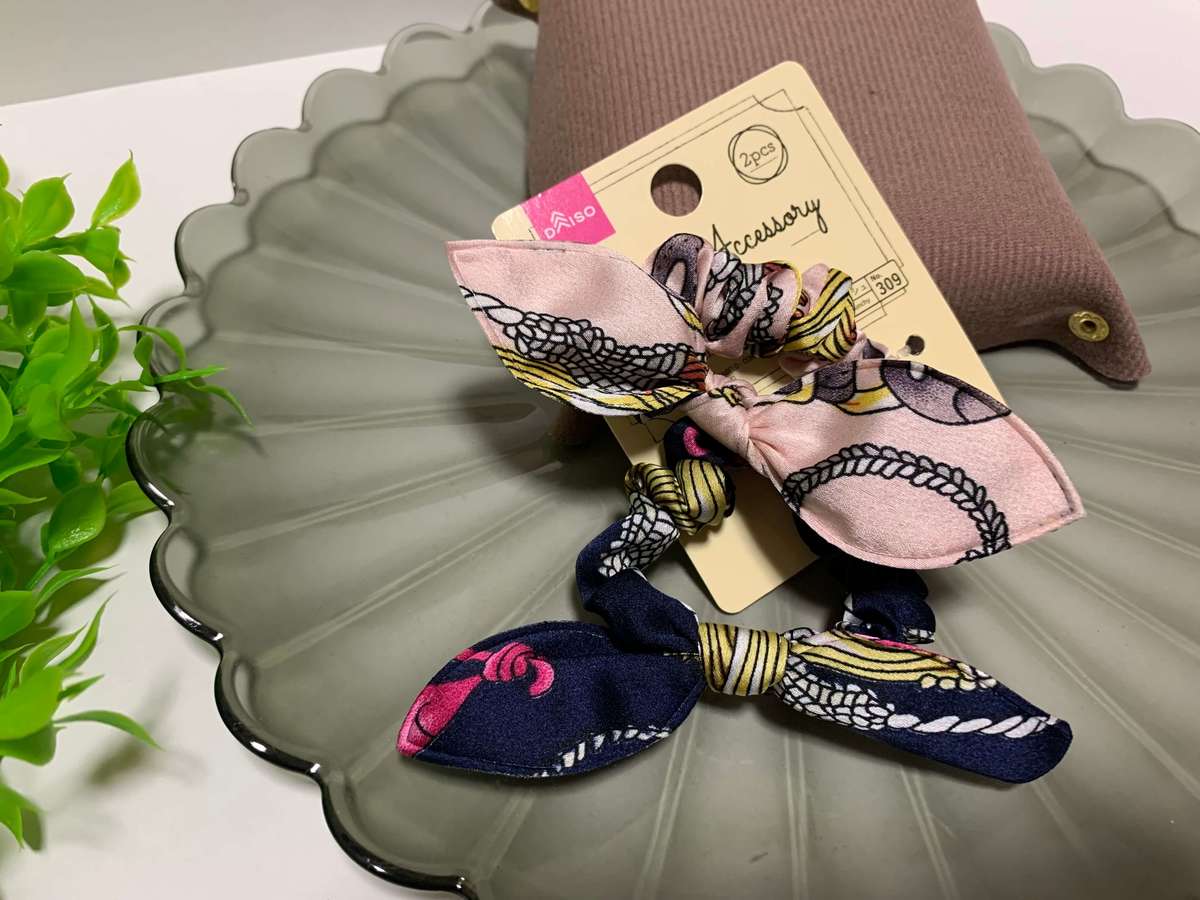 着けてみると、ボブの長さにピッタリ!しかも2本入りなので、毎日交互に楽しめます♡好きなデザインは色違いも欲しくなるんですよね。さすがダイソー、女心を良く分かってる~(笑)。