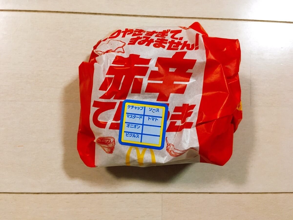 今回の「赤辛てりやき」は、期間限定の『七味マヨソース』が多めに♡