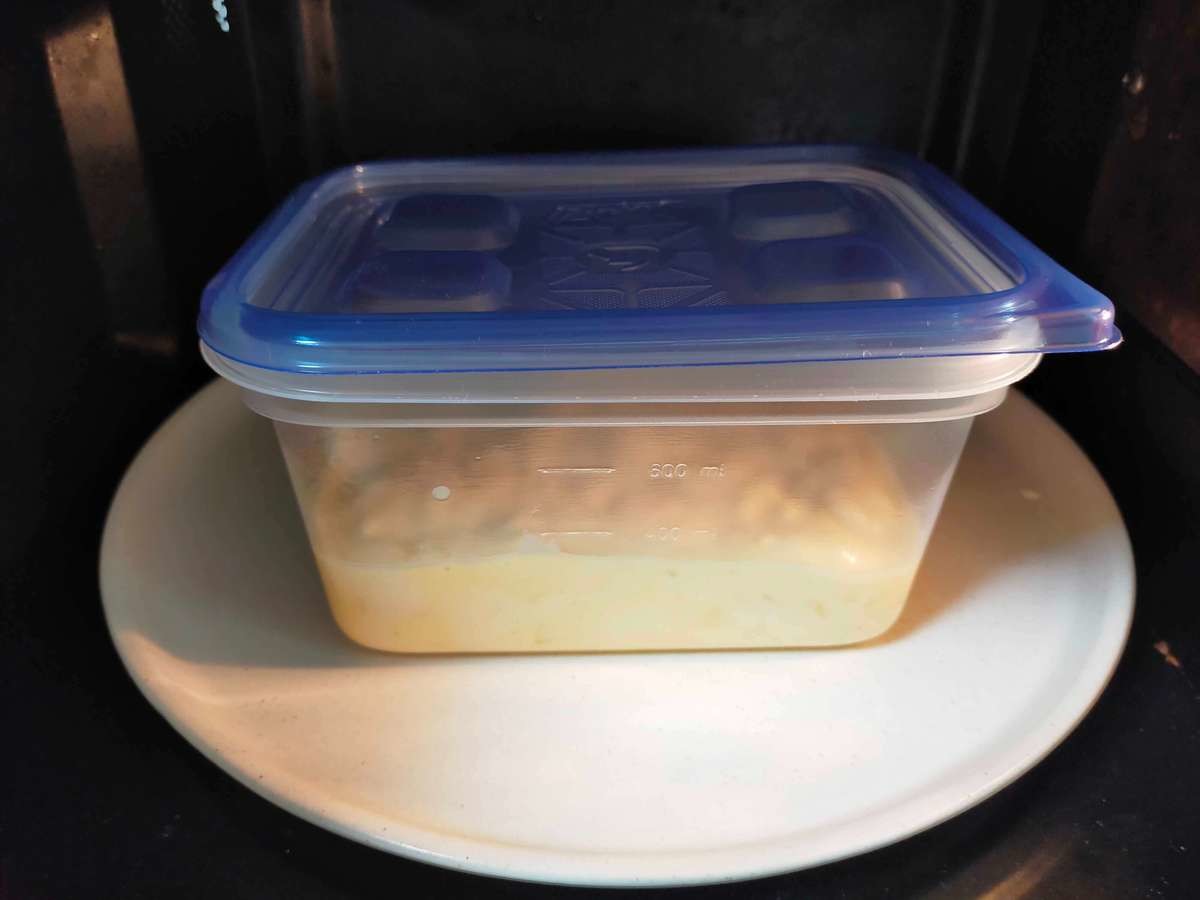 チーズ蒸しパン作り方②耐熱の保存容器に入れてレンチン