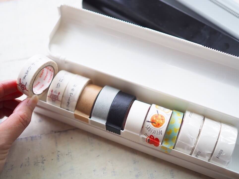最近、ふとマスキングテープの大きさに合うのでは?と入れてみたところ、なんと幅がぴったりのシンデレラフィット!