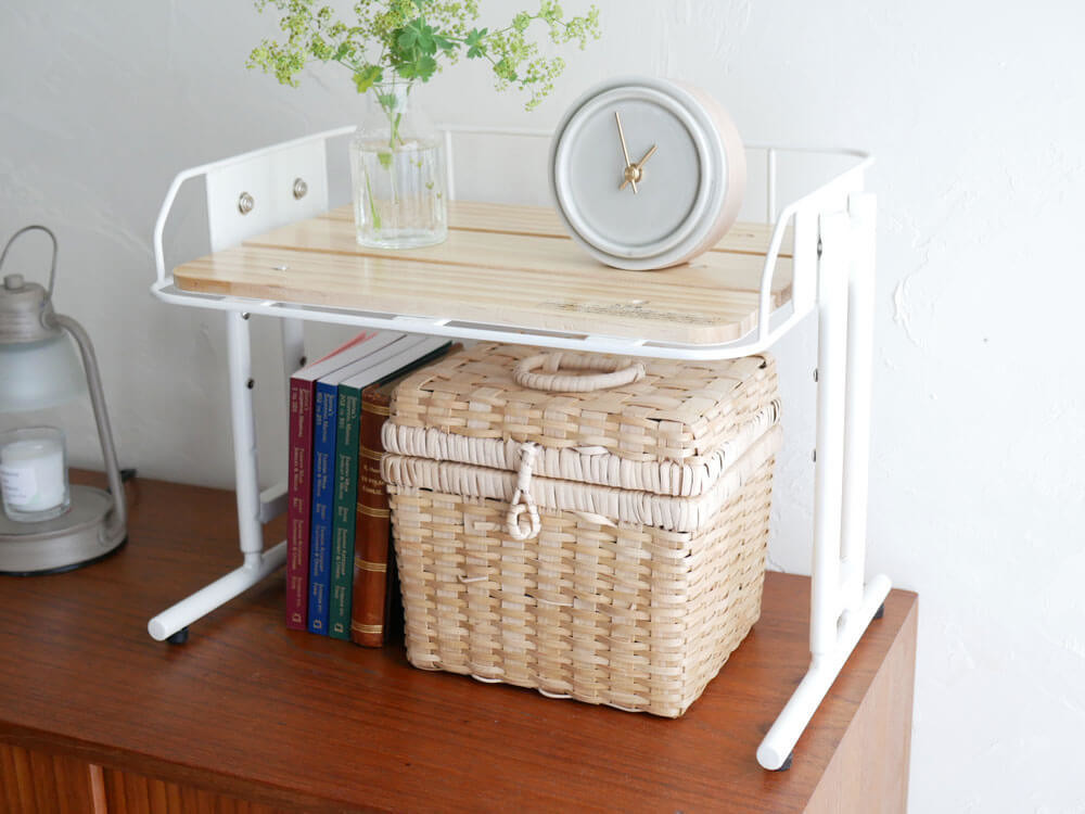空間を無駄にしないマルチにお使いいただけるラックは、本や時計、グリーンや薬箱、裁縫道具、アイロン置き場、メイク道具にゲーム機置き場などなど、置く物は無限大。