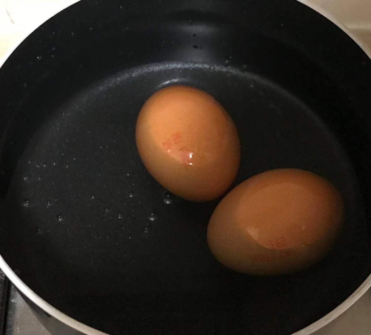 固ゆでのゆで卵2個を作ります。
