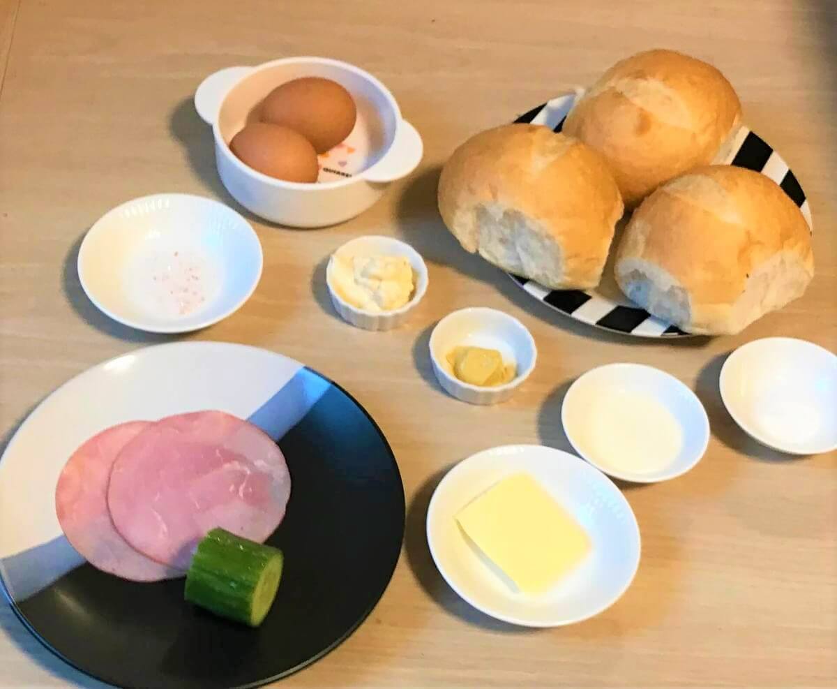 - 丸パン…3個(切れ込みを入れておく)