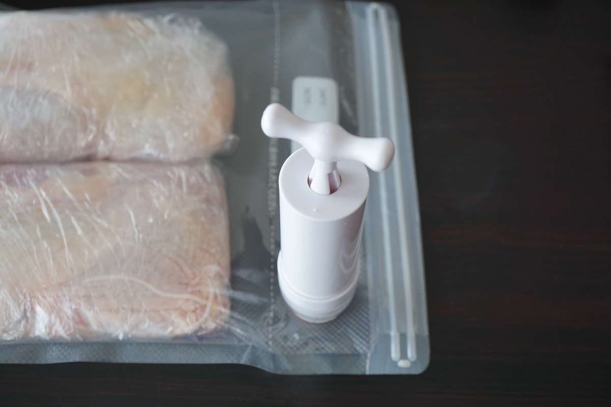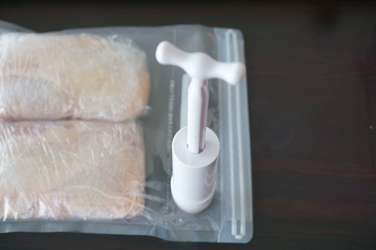 食材の量によりますが圧縮ポンプの持ち手を20~30回ほど動かすと真空状態になります。