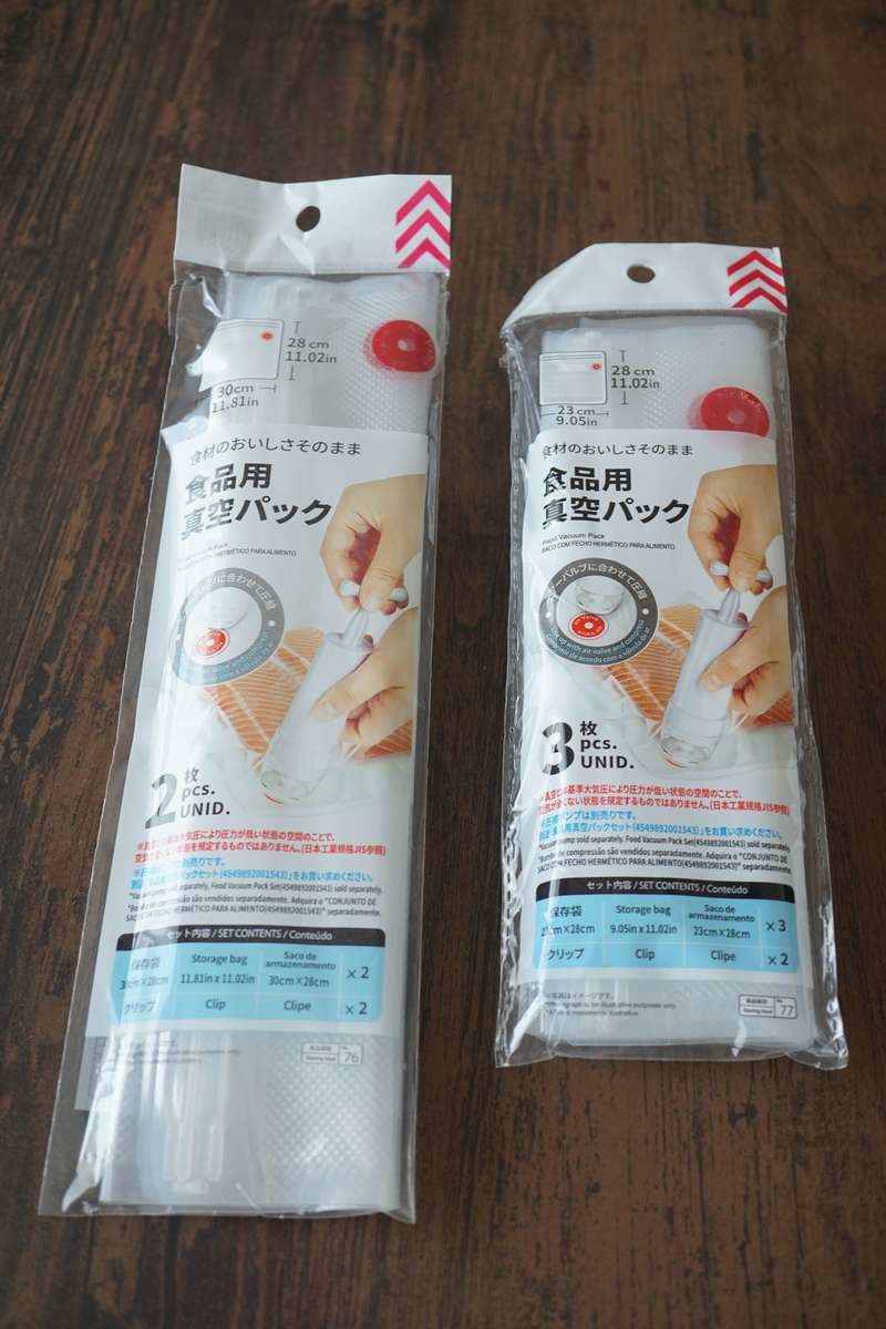 - 食品用真空パック 保存袋(28×23㎝)3枚・クリップ2個 110円(税込)