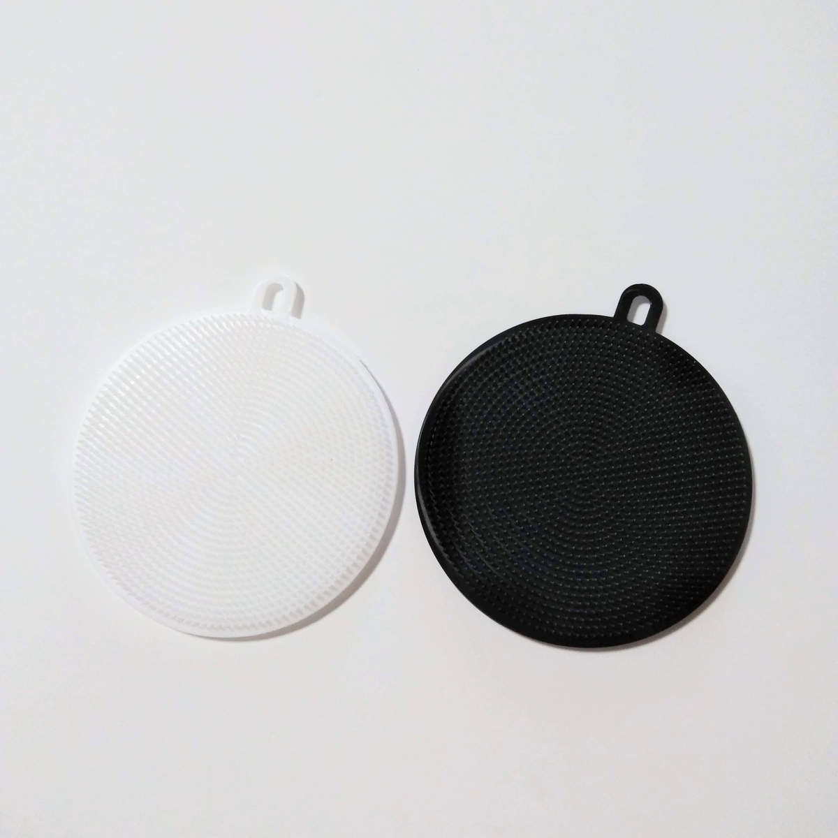 前述の「シリコーンキッチンブラシ」とこちらの丸型は、フックに引っ掛けられる穴があるので、吊り下げ収納にも便利です。