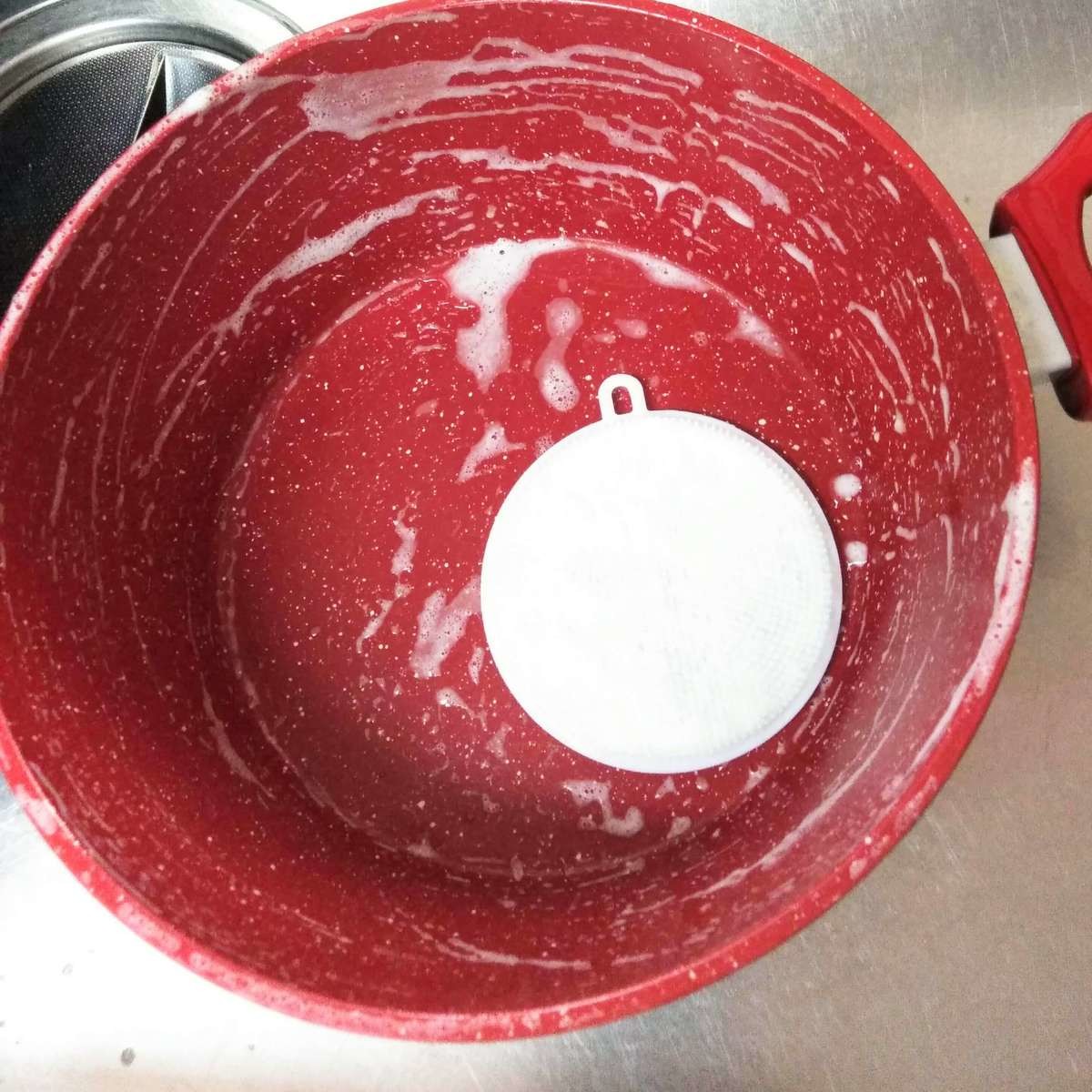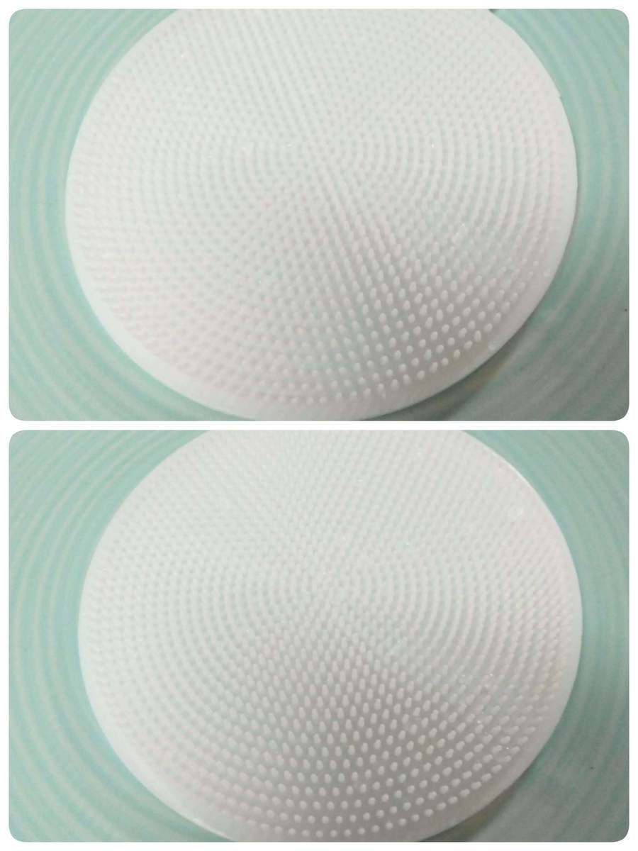 いつもは浸け置き洗いをしますが、今回は浸け置きせず、洗剤もつけずにシリコーンブラシで擦ってみると……。