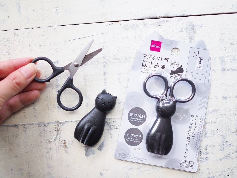 マットなモノトーンですが猫型でかわいさもあり、マグネットで冷蔵庫や玄関ドアにくっつけておけるので、洋服タグや食品袋を開封する時にもサッと手に取れて便利です。