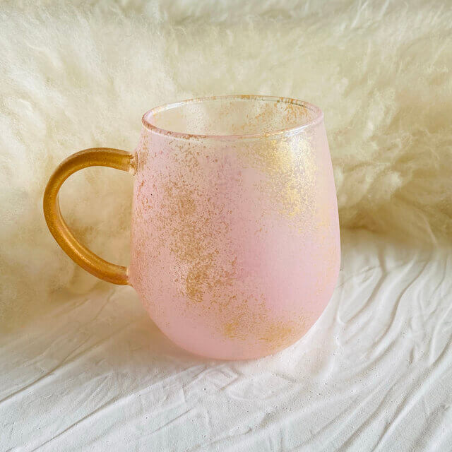 ピンク×ゴールドカラーがリッチで上品な女子っぽい雰囲気の「耐熱マグカップ」です。