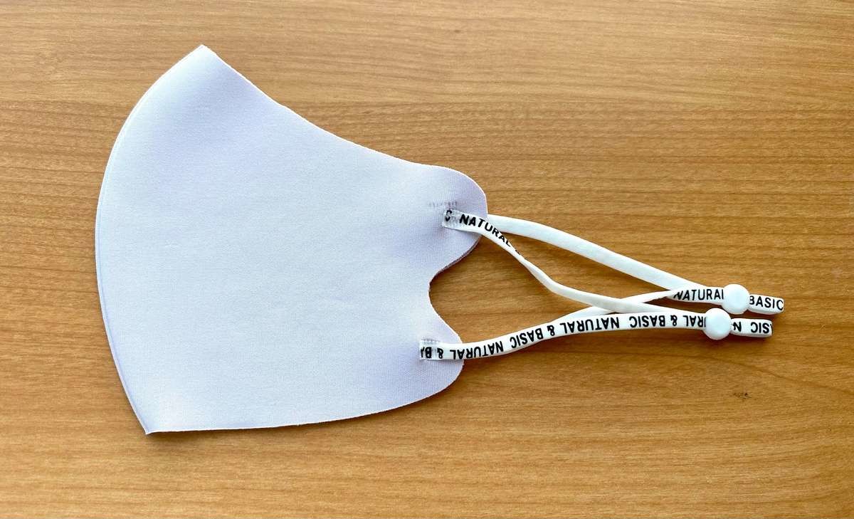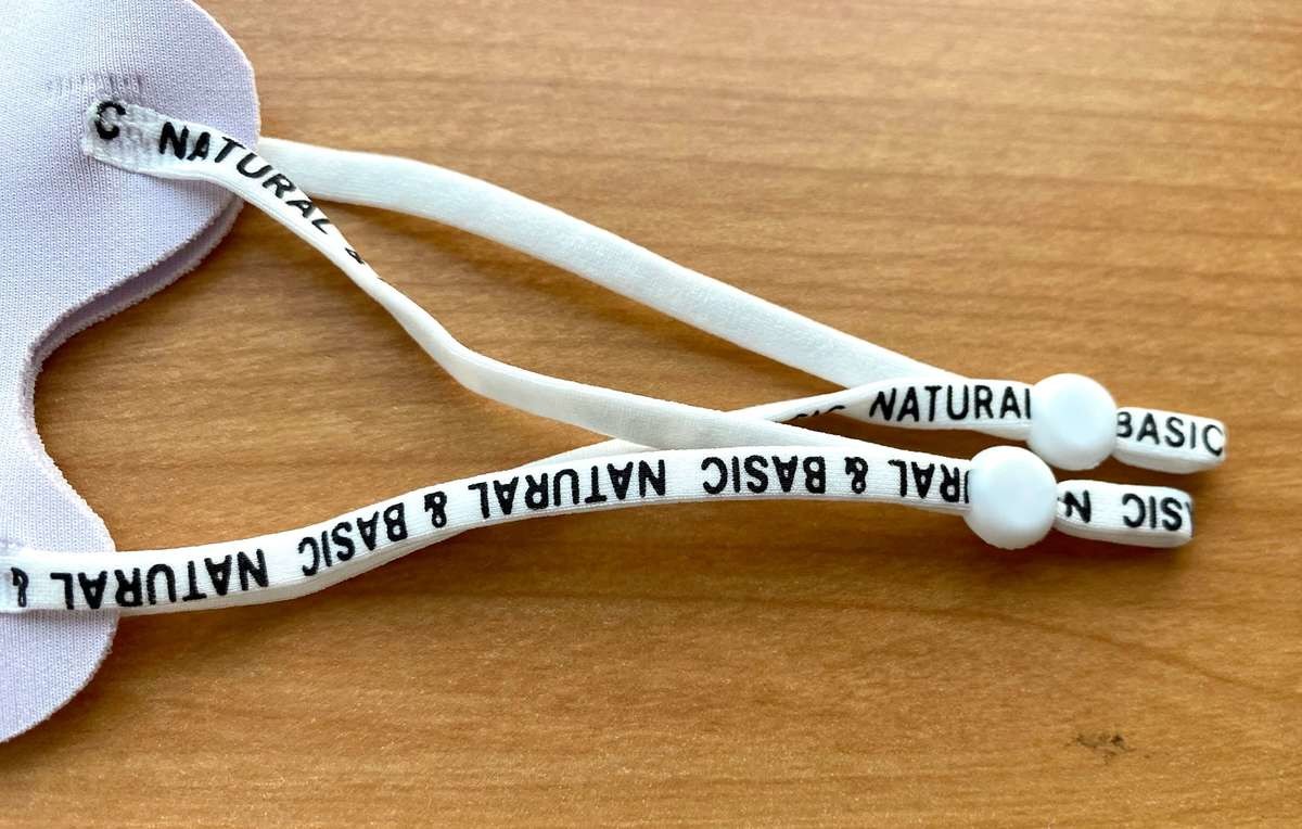 アジャスター部分には、”NATURAL & BASIC”とかわいらしいロゴが!また3D構造なので、比較的息がしやすくなっています。ぴったりとフィットし、着け心地もバツグン◎