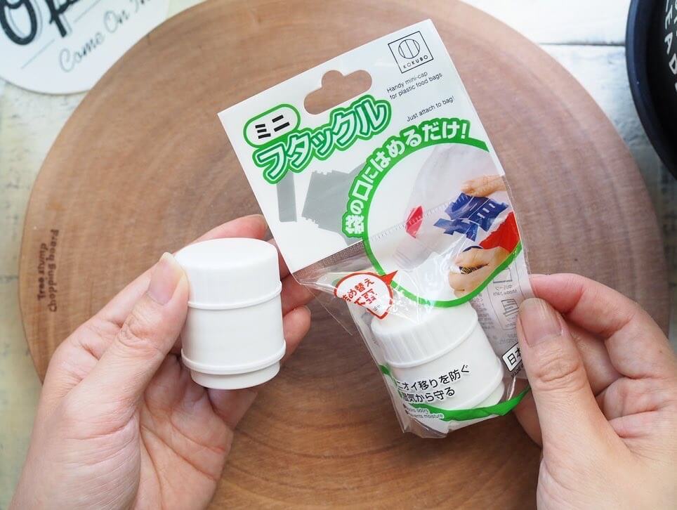 砂糖や小麦粉などの食品袋に取り付ければ、キャップ付き袋に変身するという便利アイテム。