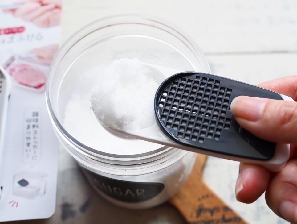 一般的な計量スプーンと違って持ち手が短めなので、砂糖や塩などを入れている保存容器にも入れっぱなしにできるも◎。