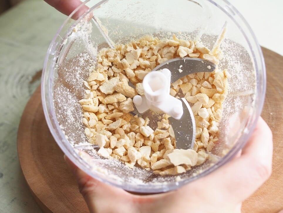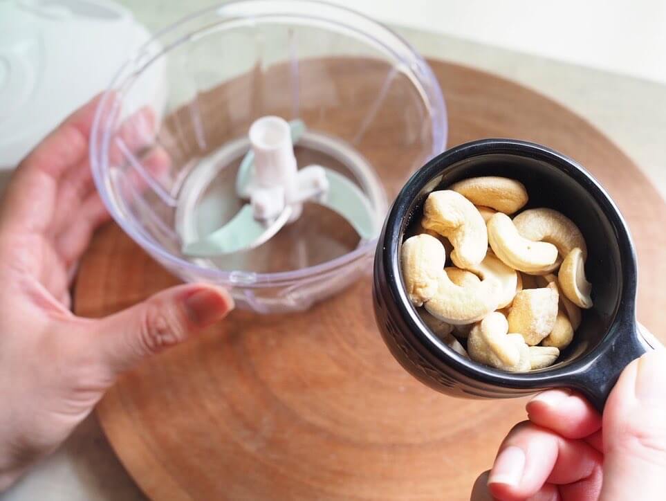 カシューナッツを砕こうとすると包丁や袋に入れて叩いたりと手間がありますが、これなら秒でできるのが嬉しいですね。