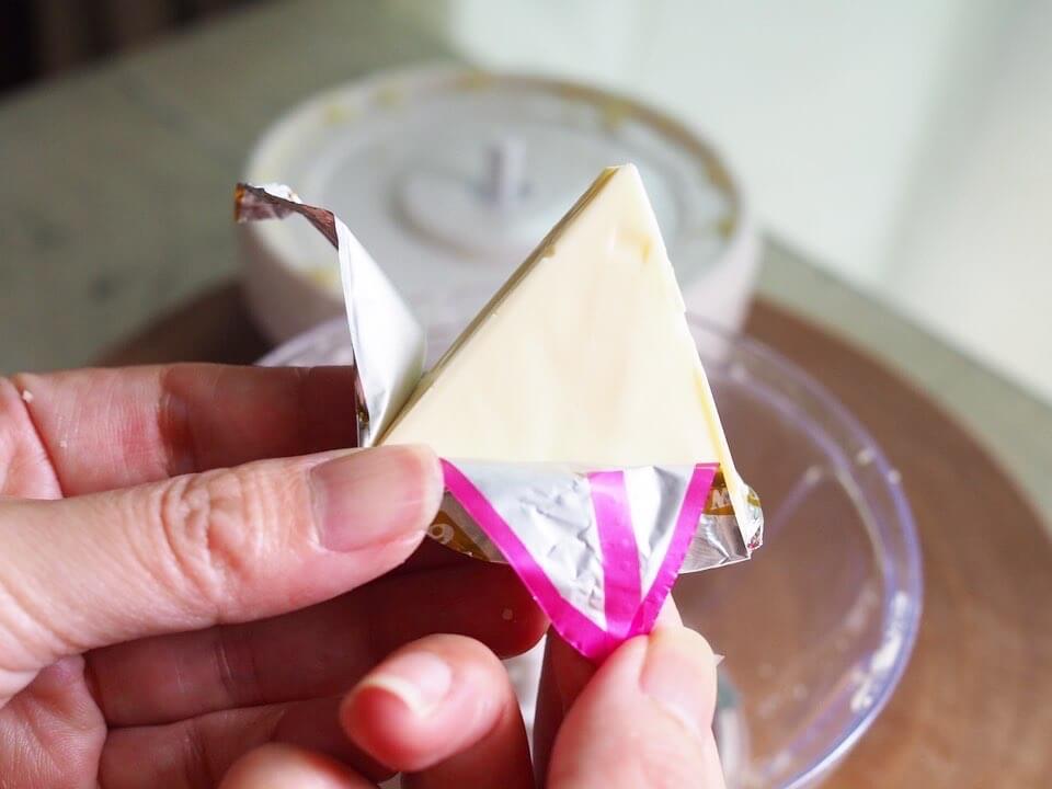 続いては、包丁だとベタベタしてカットしにくいチーズを試してみましょう。