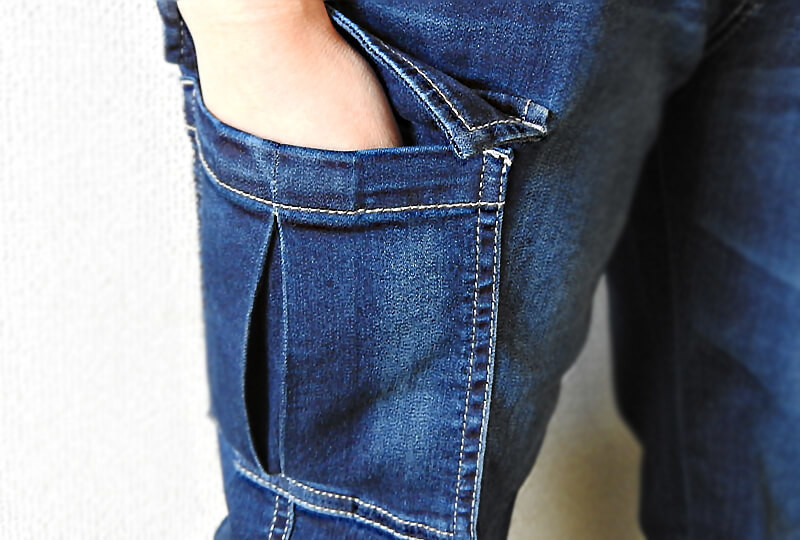 成人女性(私)の手でもすっぽりと入る(スマートフォンもラクラク入った)くらいの大きなポケットが左右合わせて4箇所もあります。