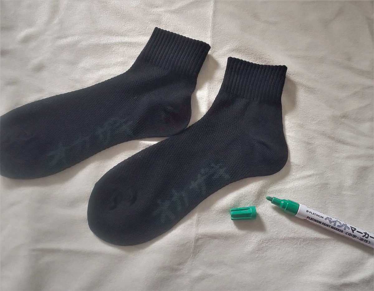 もちろん、白い靴下でも「緑色の油性ペン」で書いた名前は映えて見やすい(緑の服以外で使える!)