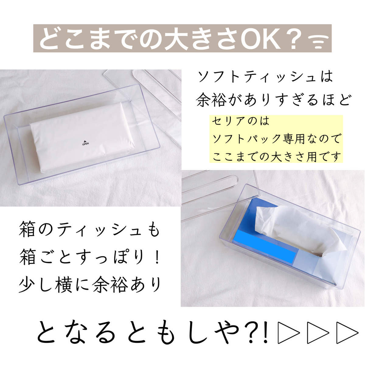 実はセリアの人気グッズにも、クリアティッシュケースがあります。
