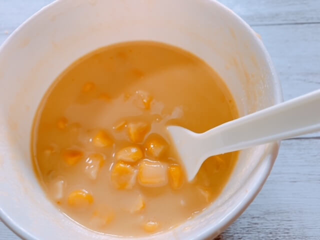 温かくて甘みのあるコーンスープに、つぶつぶしゃきしゃき食感のコーンがたっぷりはいった「コーンポタージュ」。