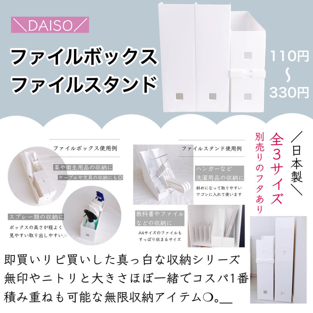 ついにポリプロピレン製で真っ白なファイルボックス・ファイルスタンドが、ダイソーに登場!