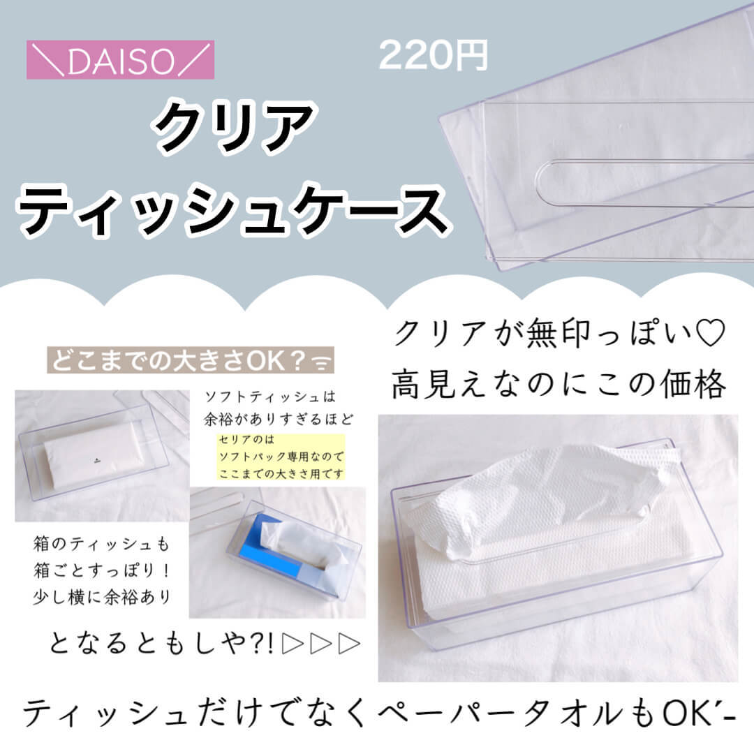 透明がおしゃれなティッシュボックスは、良い意味で存在感がなく高見えです。