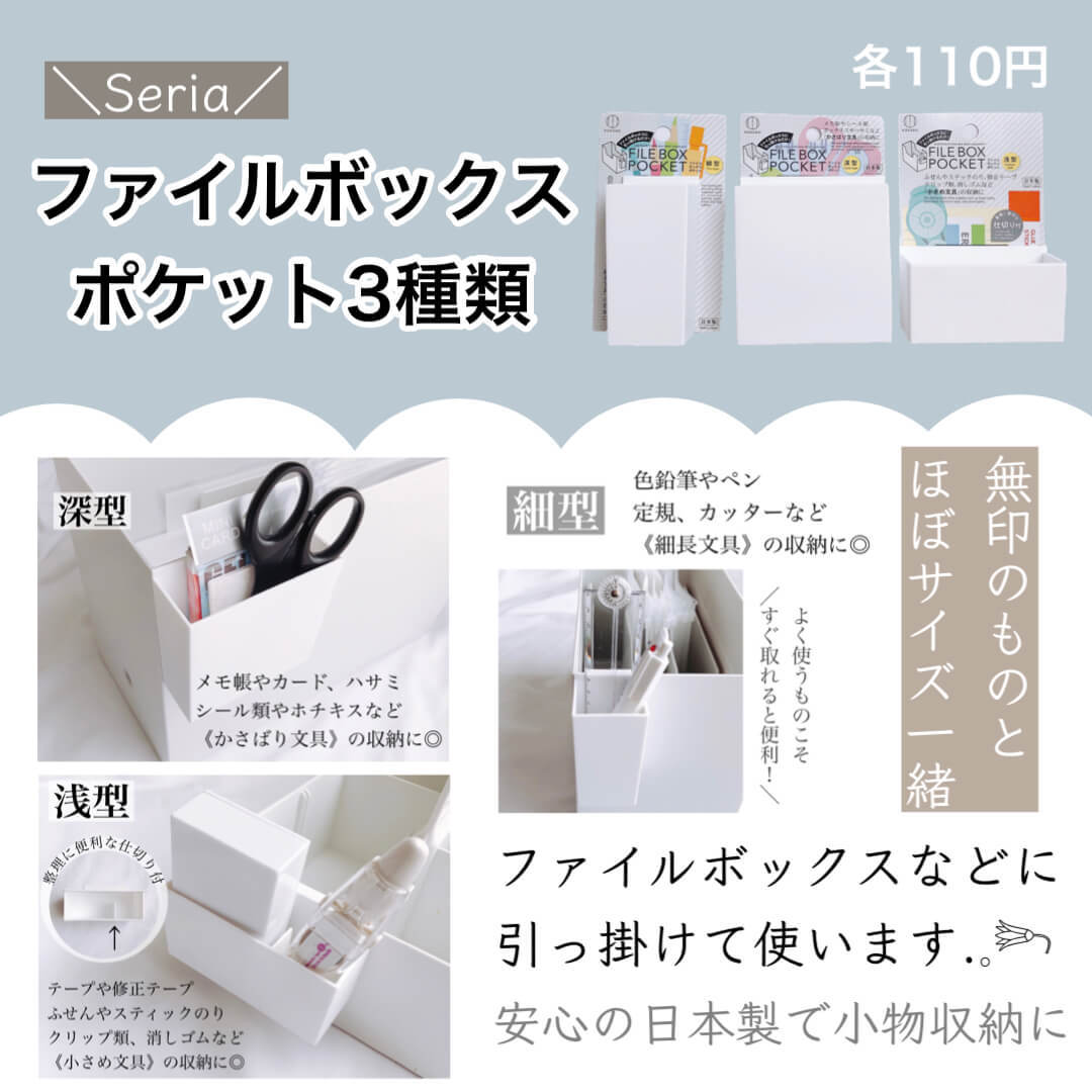深型・浅型・細型の3種類があり、ファイルボックスの内側・外側どちらに掛けて使っても便利!