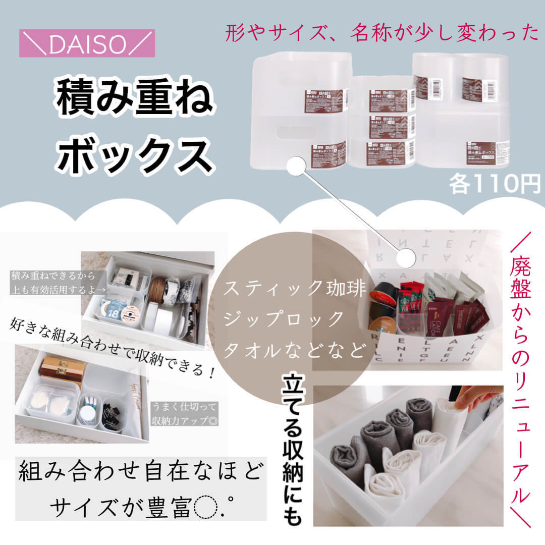 廃盤からリニューアルした積み重ねボックスは、サイズがとても豊富です。