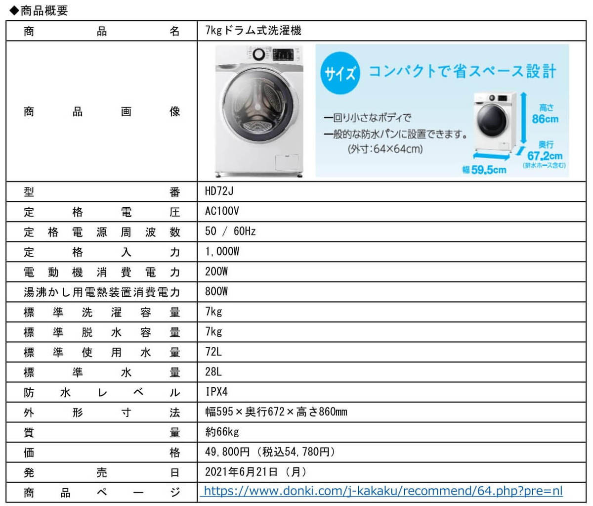 ドン・キホーテのオリジナルブランド【情熱価格】の新商品、『7kgドラム式洗濯機』を、全国のドン・キホーテ系列店舗(一部店舗を除く)において、順次販売を開始しています。