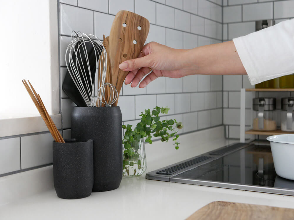 毎回調理中にキッチンツールを引き出しから引っ張り出すより、サッと手の届く場所に置いて置くほうが断然便利!