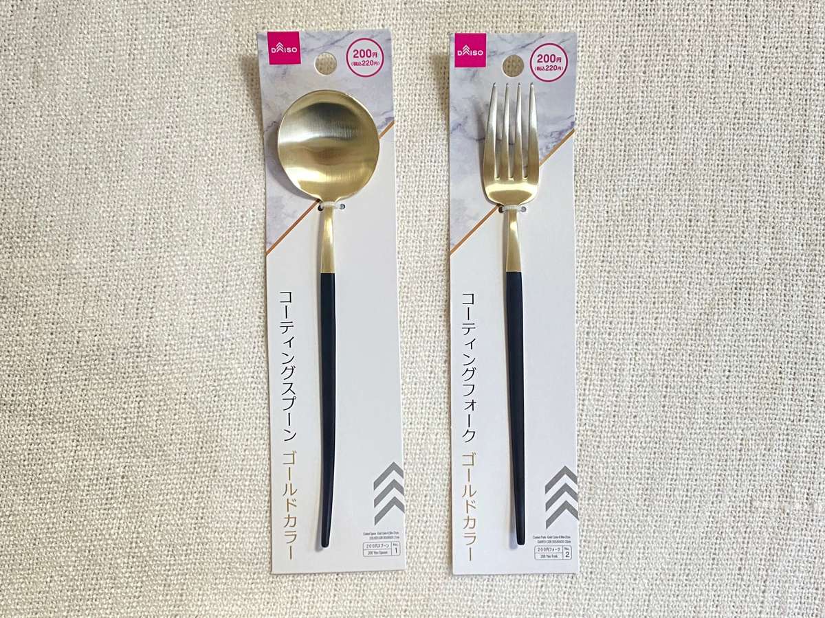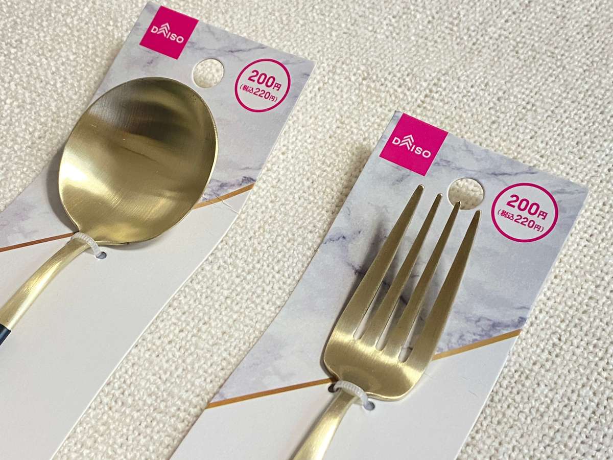 ゴールド×ブラックの組み合わせが高見えしますよね!ゴールド系のカトラリーというだけで金額が高くなるので、この見た目で1本220円(税込)という価格はさすがダイソーです。