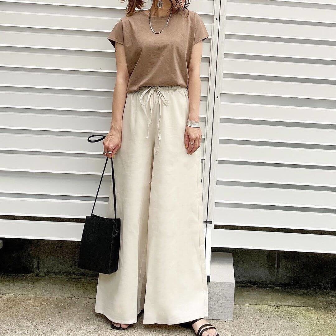 【ブラウン】ワイドイージーパンツを合わせたナチュラルコーデ