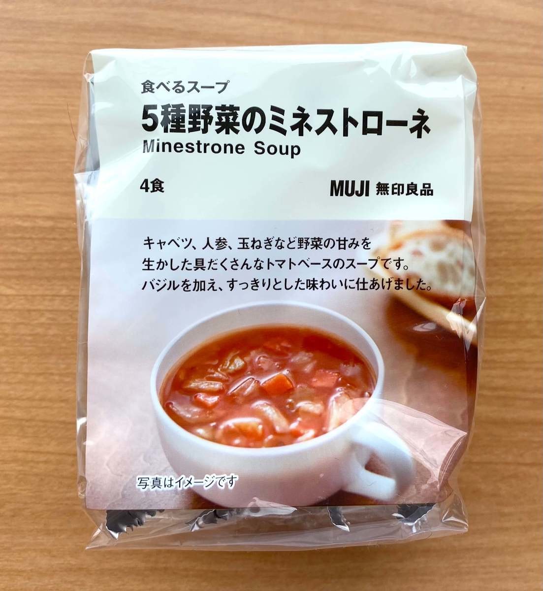 こちらは、筆者が常にストックしている「食べるスープ 5種野菜のミネストローネ 4食」。