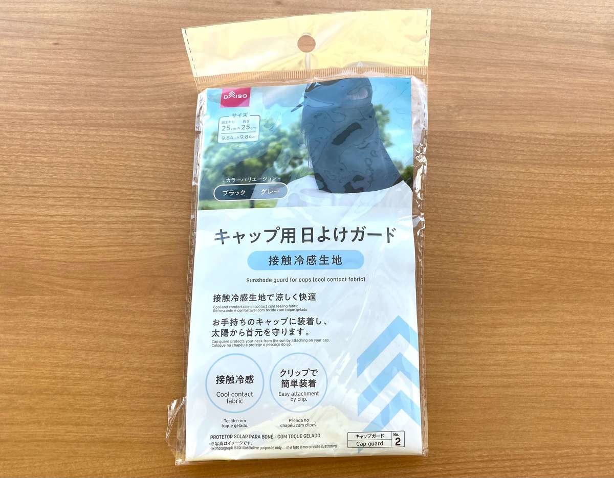 こちらは、筆者が犬の散歩で使用しているダイソーの「キャップ用 日よけガード」。