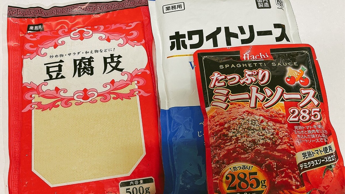 今回、ラザニアの層に使う豆腐皮とソース類は、業務スーパーで調達しました。