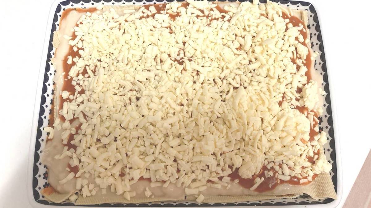 ホワイトソース→パスタソース→豆腐皮の順番で重ねていきます。